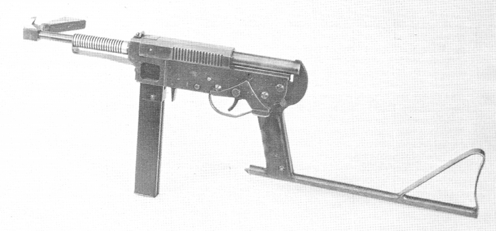 The Norm Gun was a 9mm, open bolt, blowback operated SMG. The gun fed from a magazine and used an interesting bolt setup. Instead of a bolt with a dust cover like every other SMG at the time, the gun used what is best described as a big pistol slide. The user retracted the slide to ready the gun. This created an ambidextrous design but also exposed the internals to the grit and grime of the world.