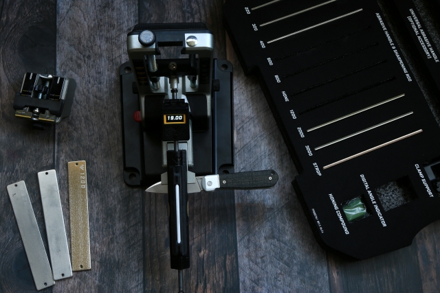 I used a very narrow-bladed CRKT CEO in the regular clamp since it isn’t a small knife. After much sharpening, I noticed the diamond plates were grinding the clamp. Even with its 3-inch-long blade, I should have used the small blade attachment, which is usually for smaller knives. However, the CEO is narrow, so I soon figured it out. This was user error!