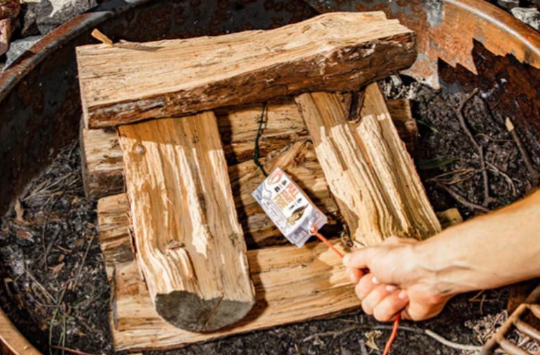 I love that Pull Start Fire works without any additional ignition equipment. It’s entirely self-contained. There’s also no need for tinder, as this serves that purpose in the fire-making process. While it’s sealed in plastic, it’s essentially waterproof. The manufacturer states it’s perfectly fine to keep in a vehicle, even during the hot summer months. They’ve rated it as safe up to about 400F. Once ignited, it’s pretty much windproof and rainproof, though dousing it with water will put out the flame.
