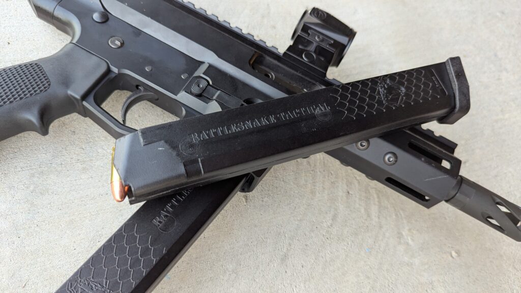 With a pair of magazines, a new gun, and a pile of ammo, I went to the range and started lighting it off. The Rattlesnake Tactical magazines slid in and out of the BC-9’s magwell with ease. Press the release button, and it drops out with ease. Magazine swaps weren’t a problem, and the texture of the magazines makes it easy to grip, grab, and put them in place.