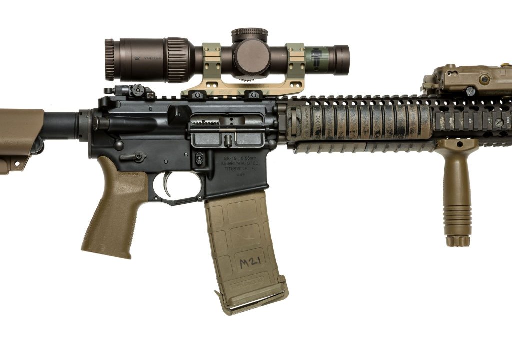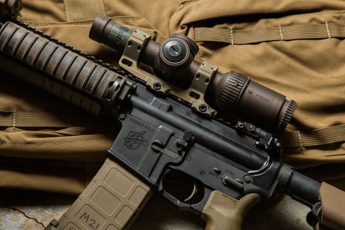 39mm is still my preferred mount height, comfortably on the comb of the stock makes this Marine happy as a fresh Crayola pack could. You may get a little visual crowding at 1x from a 12 o’clock device but that particular visual aberration, whether light, laser, or front sight post, has never bothered me and doesn’t bother most users.