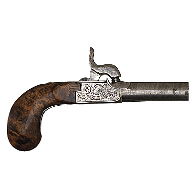 The most common manufacturer of Muff pistols was Bunny of London, or well, they are the easiest to find these days. Muff pistols were quite ahead of their time. They were carried ready and concealed, and a flintlock pistol wasn’t exactly the safest of firearms.