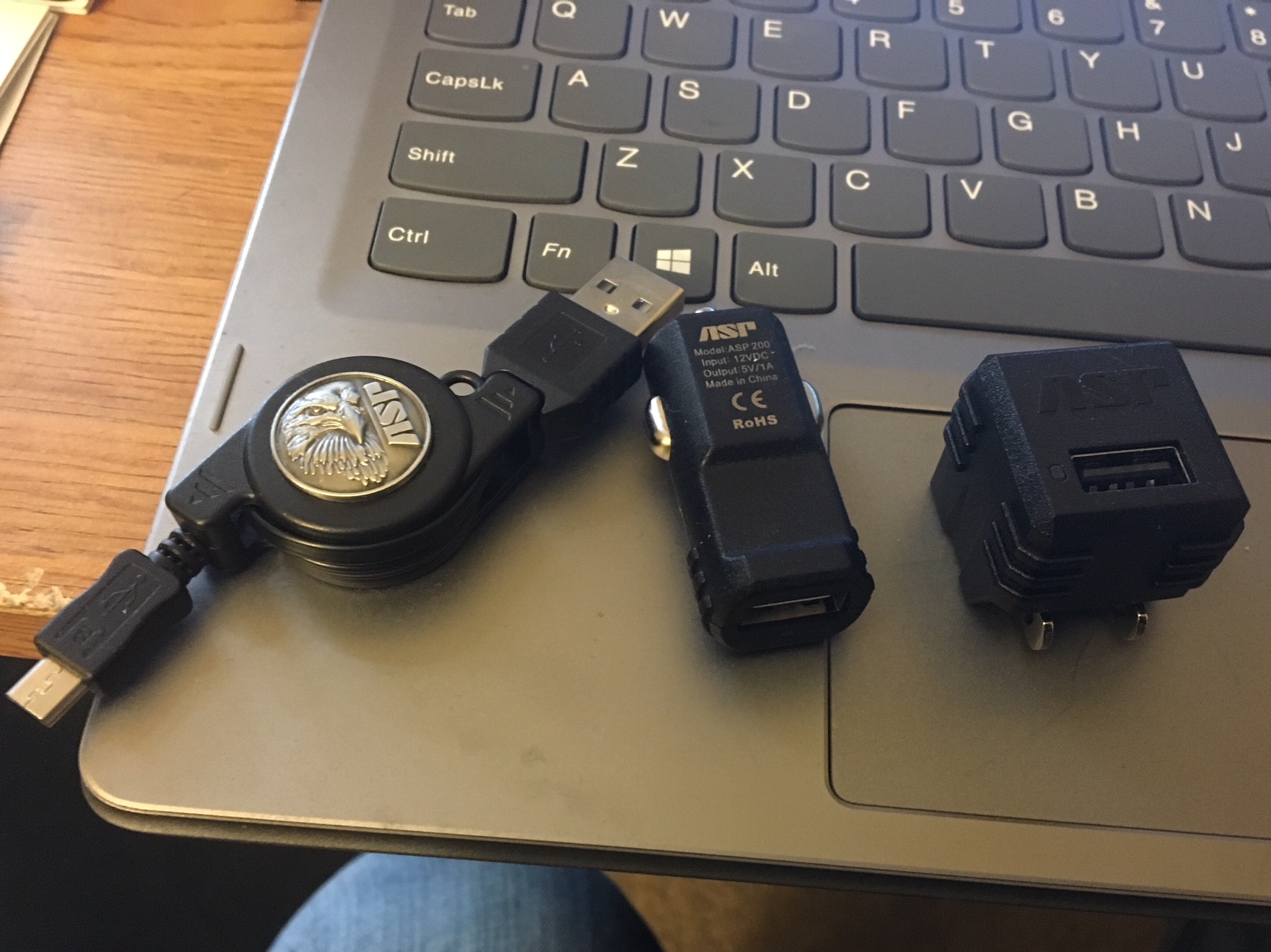 The hardware needed is included. Vehicle lighter adapter, AC Adapter, and retractable USB cord in a nylon case.