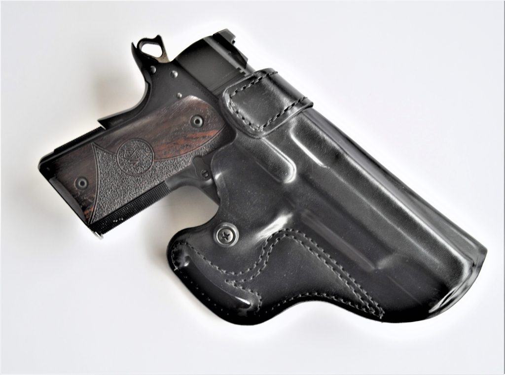 The 1911 may be modified into a number of configurations and work well. A Commander size is common. The pistol illustrated is a CCO or Commanding Officer type. This is the Commander size slide with 4 ¼ inch barrel mated to the Officer’s Model frame. This makes for excellent handling and good concealment.