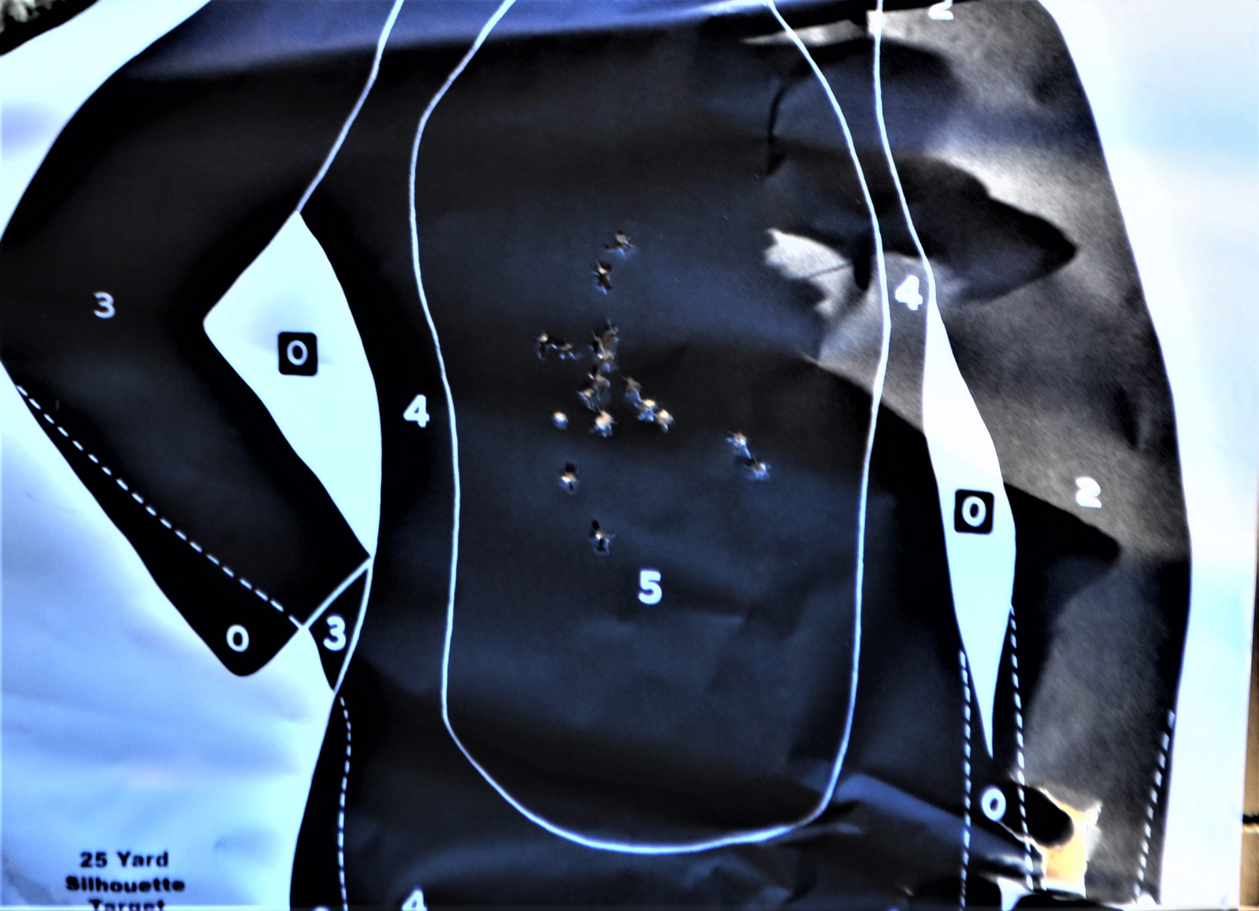 Much of my testing was done with the Remington Ultimate Defense #4 load. The Remington Ultimate Defense #4 buck load is a good home defense load with light recoil. 21 pellets are loaded. This loading went into a ten by ten inch pattern at ten yards. Remington #1 buck put 16 pellets into a 8 x 9 inch pattern. While these loads offer modest recoil and would certainly be effective at home defense range the star of the show was the Remington Managed Recoil #00 buckshot loading. At 1100 fps recoil is modest. This is an 8 pellet loading. All eight went into an average of 2 x 2.2 inch at ten yards. This is the type of tight pattern that will anchor a threat with certainty. The #4 buckshot load would be ideal against moving predators such as coyote while the double ought load is a formidable loading for armed threats.
