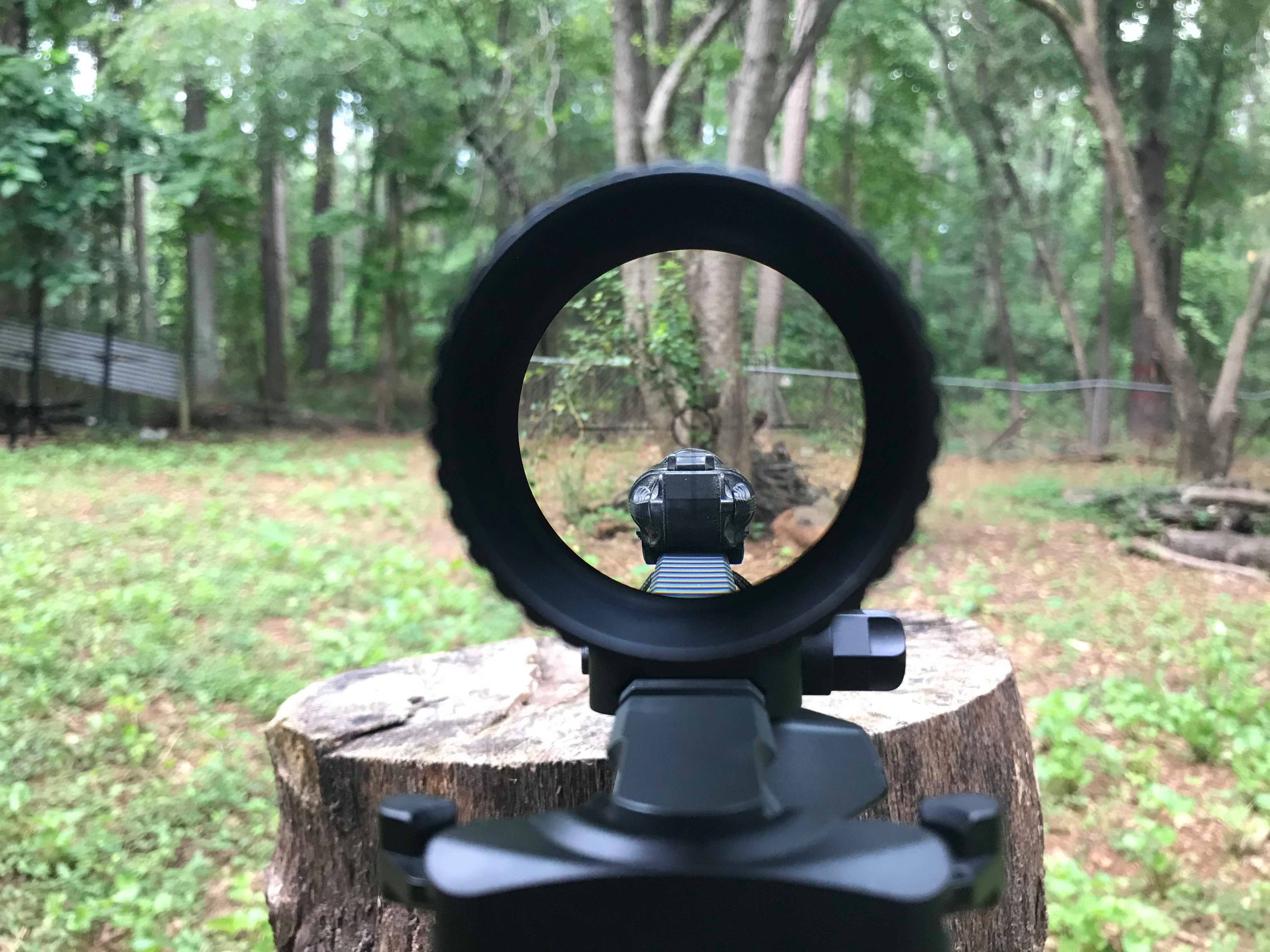 The Shepherd is a second focal plane optic, like all design decisions this implies some trade-offs. What this means is that the reticle subtensions and rangefinding features are only accurate at 8x, every other magnification involves conversion math. I mostly use LPVOs at 1x or their maximum magnification so it wasn’t a problem. Even at only 100 yards, the field of view is plenty at 8x (14.5 feet).