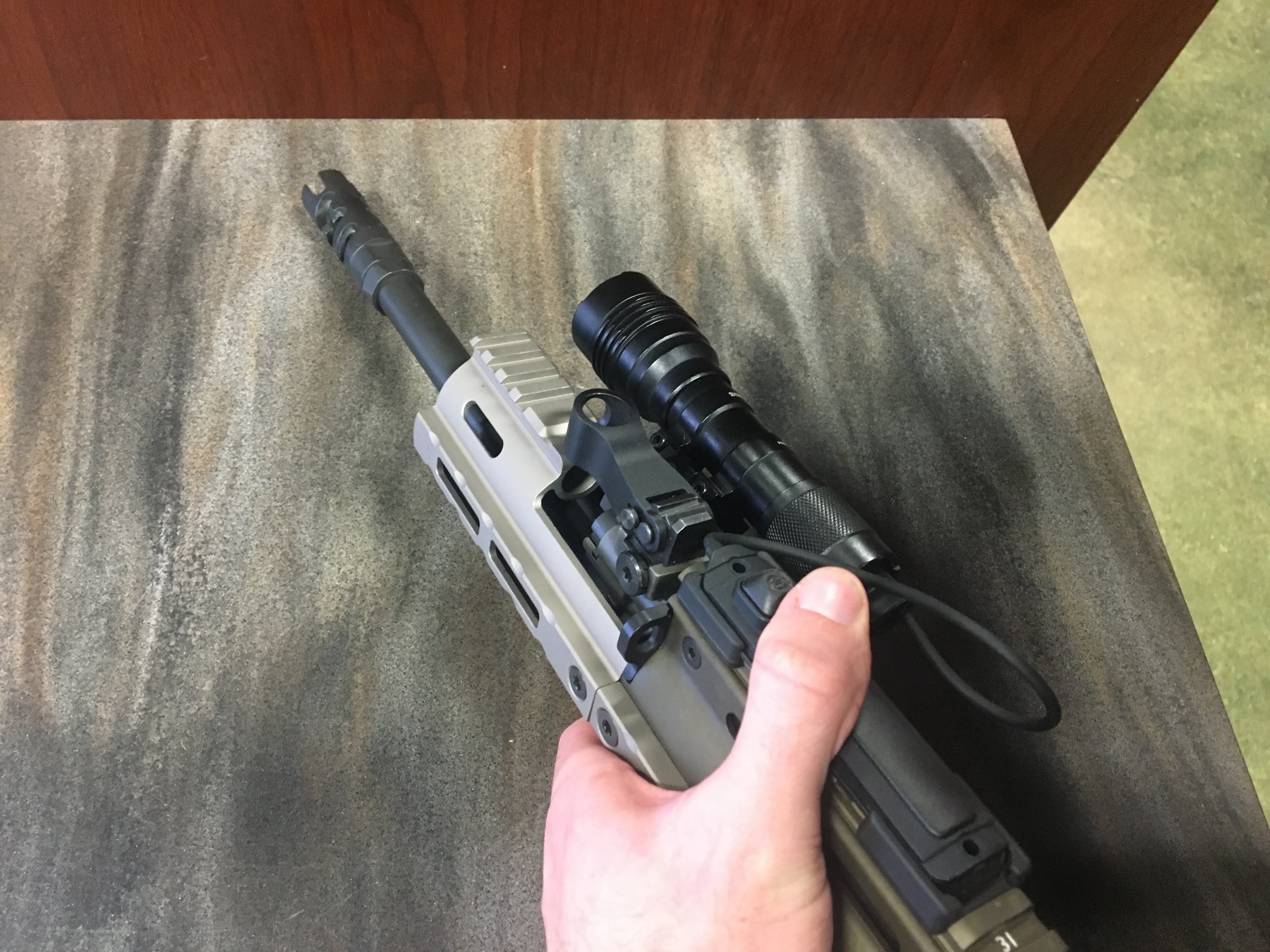 On the FN SCAR17s I used a Magpul M-LOK offset mount and had a great deal more room to work with. On the conventionally sized rifle the HL-X could be mounted and used in a fully ambidextrous position easily.