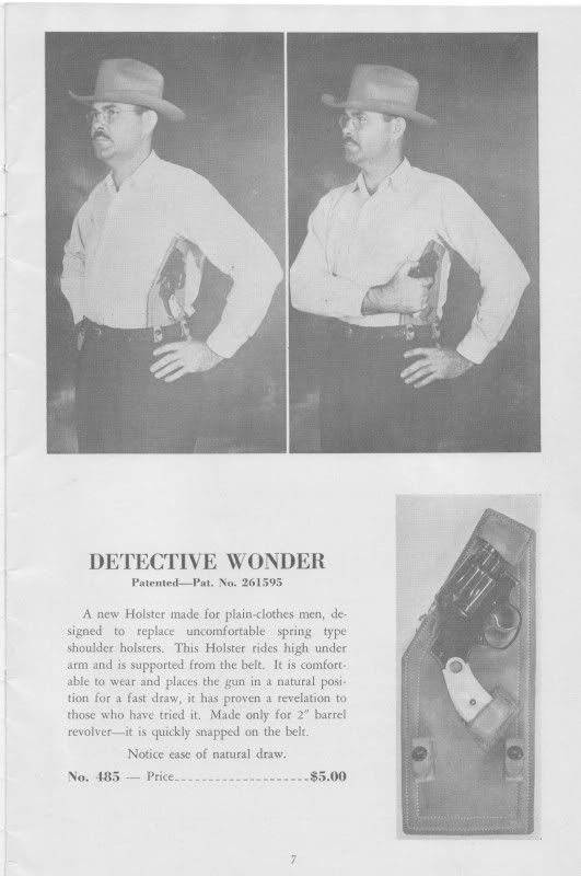 The Mexico Rig was a S.D. Myres Detective Wonder. As the name implies, the rig was produced for plainclothes police as a concealment option. The idea was to simulate a shoulder holster but to eliminate the uncomfortable nature of shoulder holsters. Shoulder holsters have improved drastically, but I imagine in the ’40s and ’50s, they were a real pain.