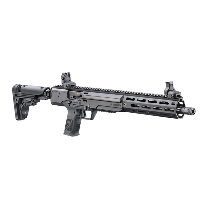 The LC Carbine series are interesting guns. They look like Glocks in mech Tech kits from a different dimension. The gun houses the magazine in the pistol grip, which reduces the overall length. The LC Carbine series comes with folding stocks and collapsing stocks, an M-LOK handguard, a threaded barrel, flip-up sights, and modern ergonomics.