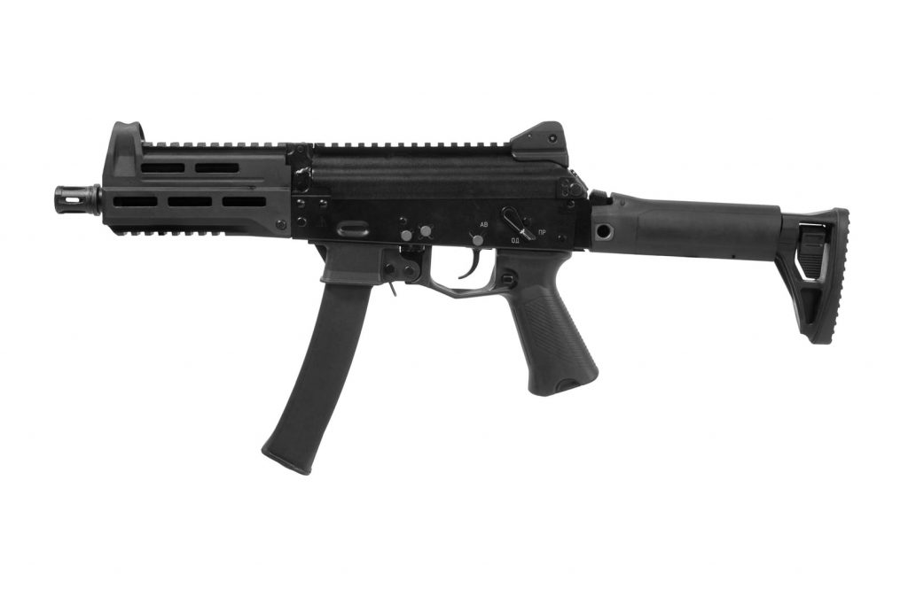 The gun uses a stock that both collapses and folds instead of the triangle stock of the PP-19. The handguard features an M-LOK design with some short sections of Picatinny rail. They also pushed the rear sight all the way back to the end of the dust cover. This greatly increases the sight radius, which will make the gun easier to shoot accurately.