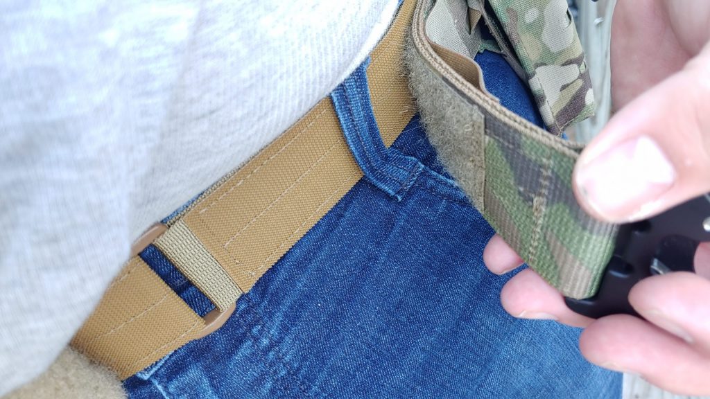 The external belt has an internal layer of loop material that clings to the inner belt with ease. It attaches tight to the other belt, and I’m talking real tight like 1911 and boomers tight.