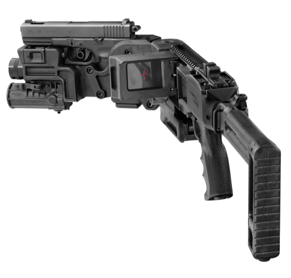 Below the handgun sits a camera, and a folding screen broadcasts to the user what you are seeing. A hinging component allows the user to fold the device and gun around a corner to either the left or right. The user can position the handgun around a corner, aim through a screen, and engage the threat. This Israeli innovation is still kicking around but only saw limited adoption.