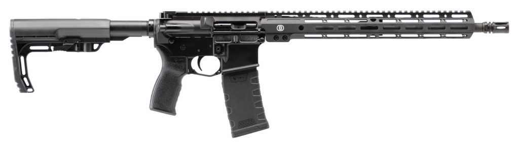They had 16-inch 5.56mm and .300 Blackout rifles and pistols in those calibers plus 9mm. The BAR15 comes with a 15-inch MLOK rail and is fitted with Mission First Tactical stock, grip, and magazine. Weight is just 6.4 pounds. MSRP on the .300 Blackout model was $899.00.