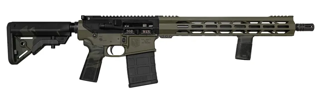 Diamondback Firearms had a good number of new releases for SHOT Show. One that caught my eye was the 16-inch DB 10 in .308 Winchester. The one they had on display had a two-tone finish with OD lower and MLOK rail and a black upper. It was fitted with a B5 Systems grip, stock, and foregrip in M81 Woodland camo pattern. MSRP on the 16-inch DB10 was $1177.