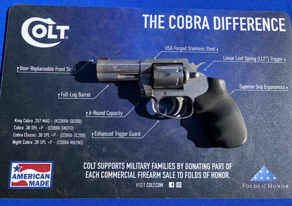 Colt King Cobra – my first impression is that this gun is a fairly easy shooter for a .357. I often shoot a revolver in IDPA, so six-shooters are not unfamiliar to me. The King Cobra had a nice trigger pull, and was a pretty smooth operator. I was impressed.