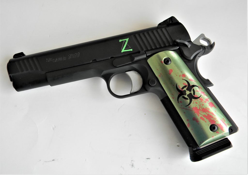 I find the SIG Zombie gun an excellent addition to the battery. It is a fun gun, a conversation starter, and if need be as effective as any 1911 .45.