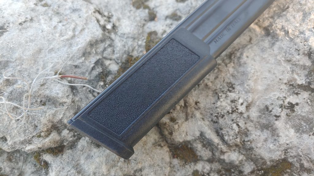 On top of that, the insert is textured with a very grippy material. The pads of texturing run up both sides and that coordinate exactly where your thumb and forefinger fall when you draw your magazine for reloading. It’s more than a long piece of bare metal. The polymer inserts fit perfectly in a full-sized handgun grip or a PCC magwell.