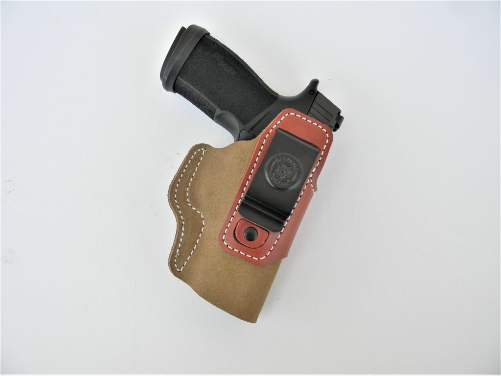 I turned to one of your most respected makers for a high quality inside the waistband holster. The DeSantis Transit is an old school IWB holster with a new school twist. It is built from firm, sueded center cut steerhide and reinforced at the top with both Kydex® and premium saddle leather to aid in easy re-holstering. The holster also has a heavy-duty spring steel clip which can easily be moved over to either side making this holster ambidextrous. Most models of the holster are red dot compatible.