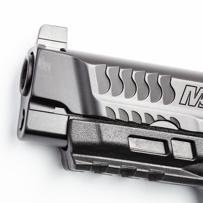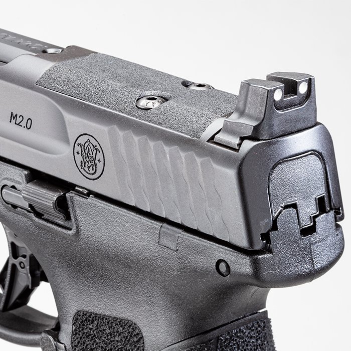 All M&P®10MM models feature an optics-cut slide with optics-height white dot sights for the ability to co-witness.