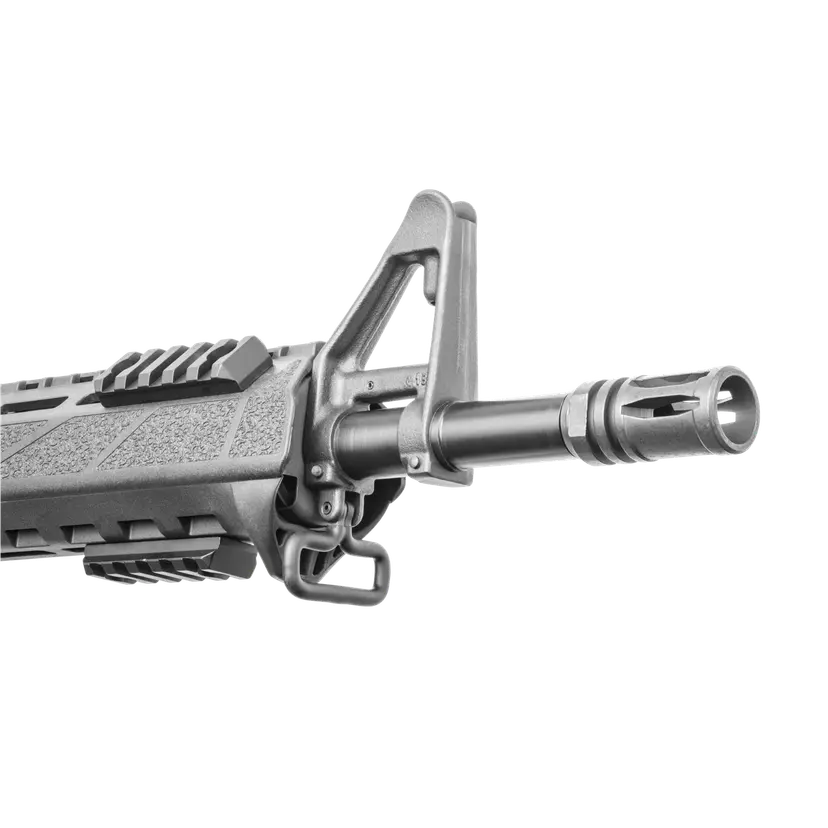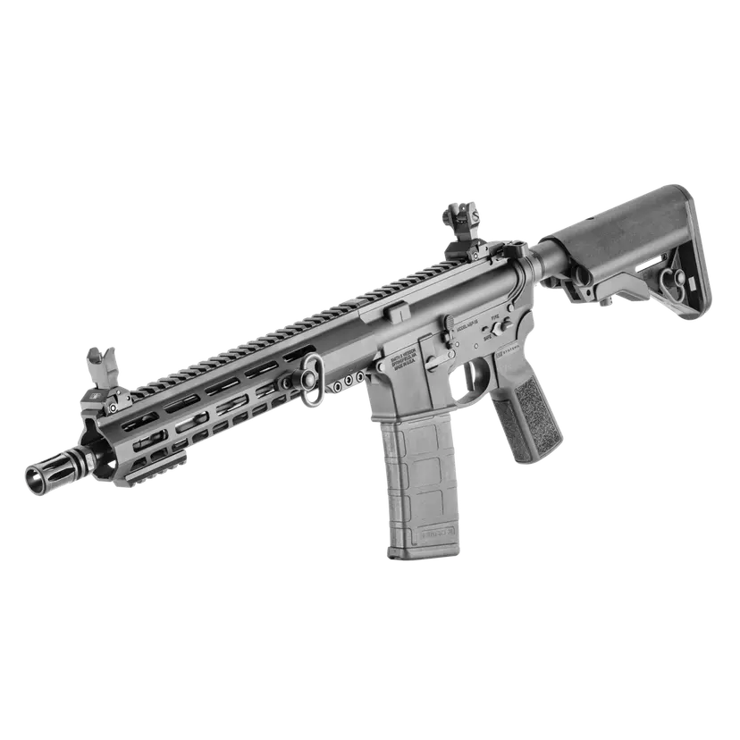 It comes with two M-LOK rail sections and a Magpul 30 round 5.56mm NATO magazine. While close in specs to the other SBR, you get some different options on the Gunfighter, including that rugged, fixed front sight base.