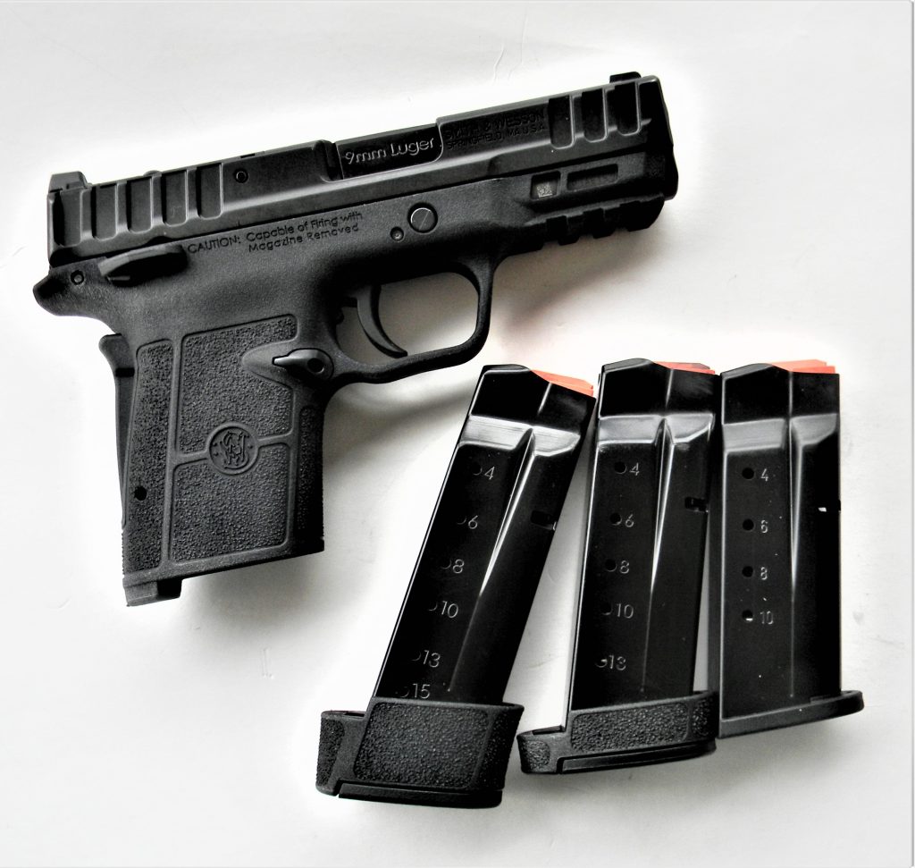 The magazine springs are stiff. That is a good thing as the magazine must feed a long column of cartridges from full compression to almost no compression. A supplied UP Lula loader gave me an edge when loading these magazines.  I loaded the ten round magazine by hand and usually loaded only fourteen cartridges in the fifteen round magazine. The supplied Uplula magazine loader made a tremendous difference in ease of loading. The Equalizer was tested with a wide range of bullet weights. Lightest was 92 grain Fiocchi and the heaviest 150 grain Federal. All functioned well. The Equalizer never failed to feed, chamber, fire or eject with the ten and thirteen round magazines. I had a couple of short cycles with the fifteen round magazine. Maybe a break in malfunction? The Equalizer is fast on target and the trigger while not target grade offers a clean reset. Like many Smith & Wesson handguns the Equalizer pistol is designed with a good grip angle providing a natural point.
