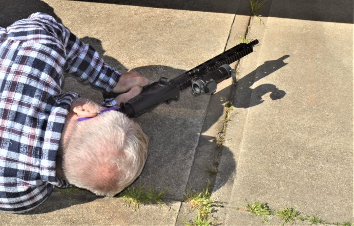 The FPC is much easier to shoot well than a handgun. Practical accuracy is greater than a handgun and velocity somewhat better. Accuracy at even 100 yards is sufficient to rip the center out of a target. The FPC carbine allows a shooter with a minimum of training and marksmanship skills to put a lot of hits into a threat quickly. The stock features a secure carrier allowing deployment of two spare magazines. Some practice is required to quickly release magazines. This ammunition reserve is good to have handy on the firearm not the belt. The fits most shooters well. I mounted the SIG Romeo 7 red dot sight for testing. I lubricated the bolt- about the only maintenance the FPC will need- and began firing. The red dot was easily sighted in. Firing impressions were good. The FPC carbine has some momentum but recoil is light. The trigger features a sharp reset. Ammunition was fired in combat drills extending to 25 yards with good results. The FPC will put five shots into less than an inch at 25 yards from a solid benchrest. More importantly the FPC is a joy to fire and use in offhand fire. The X ring suffered!