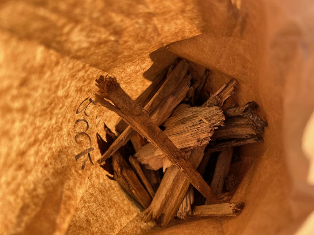 I wanted to try an experiment. I wanted to see if this little stove would burn bigger chips of MULCH. Yes, the purpose of mulch is to suppress weeds and retain moisture, thus the mulch is almost always damp. But what if you gather big pieces when it is dry or what if you buy a bag of it to store for fuel? Fancy-schmancy mulch can be expensive. But I found stuff at Menards that looks like it is merely chipped up construction waste for 2 bucks a bag. This is what I spread between my garden raised beds, so I started picking up some of the bigger drier pieces for my experiment.
