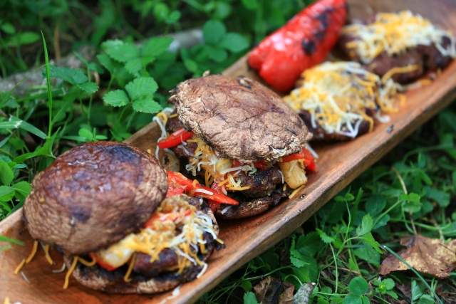 Portobello Buns on these burgers for less carbs and more umami flavor!