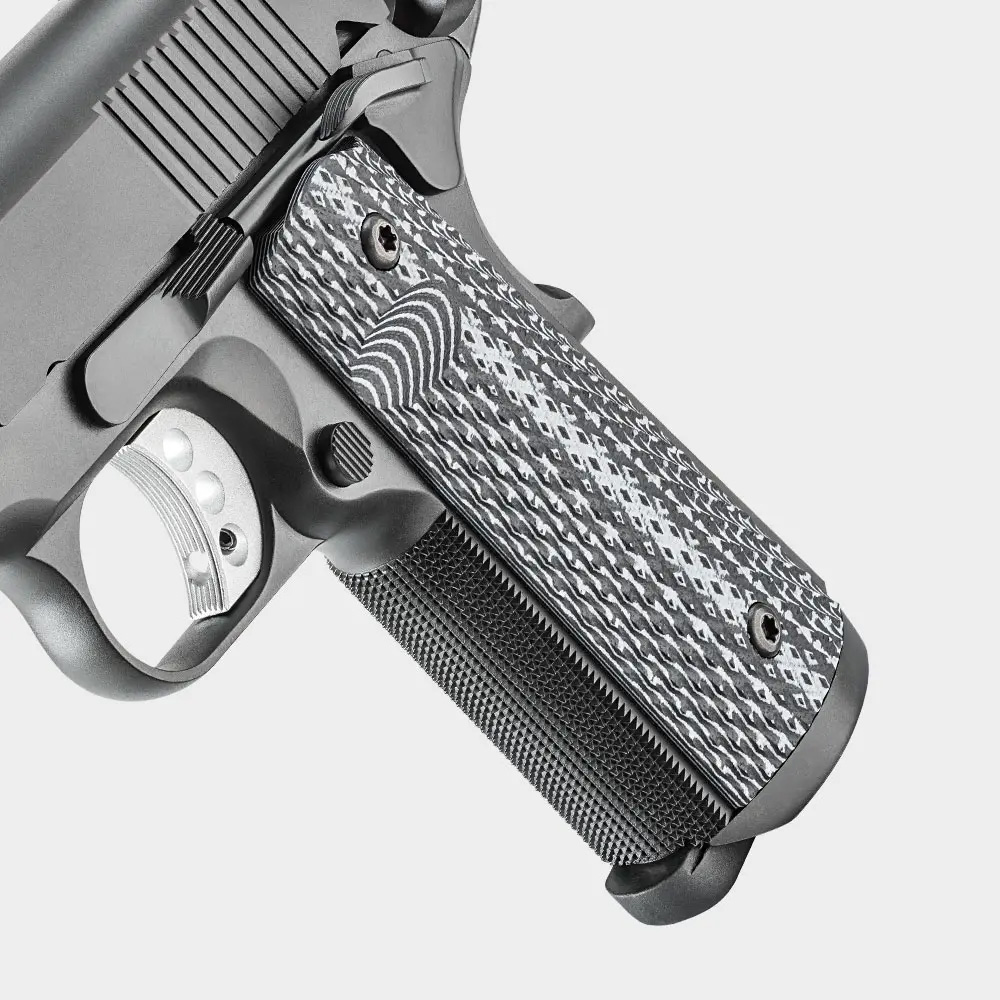 A few years ago Springfield engaged in a rigorous competition. The FBI was choosing a modern, reliable and accurate 1911 type handgun for issue to the Federal Bureau of Investigation Special Weapons and Tactics (SWAT) team, the Hostage Rescue Team (HRT) and SWAT trained officers. The end product was the winning Springfield Professional. This handgun finished a grueling 20,000 round test without a single malfunction while maintaining a 1.25 inch average for five shot groups at 25 yards. The Springfield Professional is beyond question the most proven of all modern 1911 handguns. The pistol is offered commercially as the Professional Model. A combination of features including a match grade Nowlin barrel and superb handfit make the Professional a very desirable handgun.