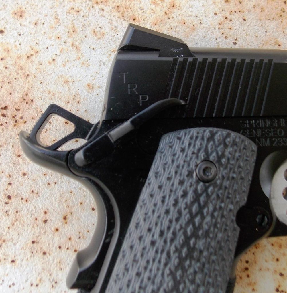 Today, with the hunger for 1911s seemingly insatiable, sales of the Professional are good but limited by production methods and the price of the Professional. A considerable amount of hand fitting goes into the pistol. They simply cannot be built any other way. For those like myself who desire a good 1911 and have a strong  belief in the type, the wait and expense are reasonable. Just the same after waiting thirty six months and spending over two thousand dollars for the Professional handgun, a good solid custom shop handgun such as the Tactical Response Pistol is attractive. The TRP is a top grade 1911 but just a notch or two downscale from the Professional. The TRP is much closer to the Professional than the Loaded Model in fit, feel and performance. You cannot upgrade the Loaded Model to TRP status. The handfitting accomplished in the custom shop simply cannot be done without a great deal of custom work and would be more expensive by far than the factory TRP. Springfield Armory TRP handguns feature Novak sights with tritium inserts. The slide features a lowered, scalloped ejection port and forward cocking serrations. The pistol features a very tight lock up. The beavertail safety is well designed, serving to funnel the hand into the grip and accenting the already low bore axis. The ambidextrous safety strongly resembles the classic Armand Swenson design. The pistol combines considerable flair with practical utility.
