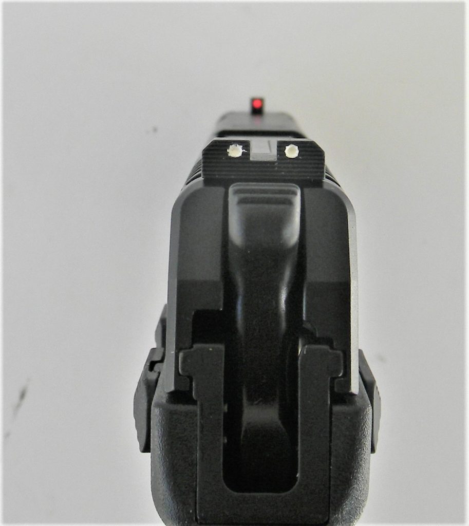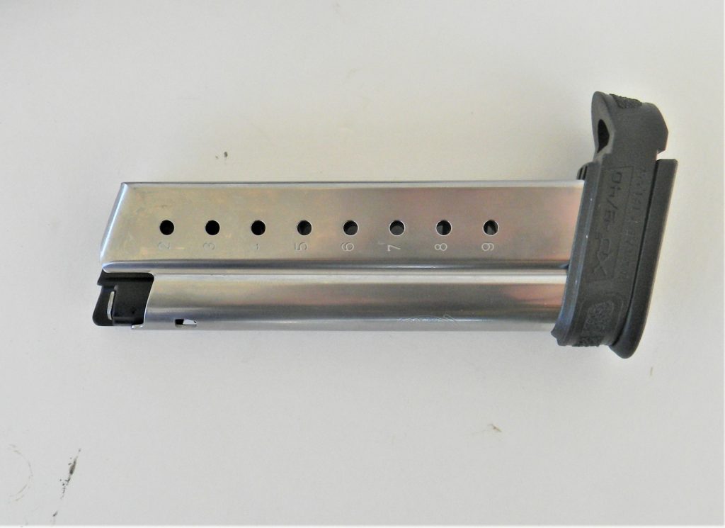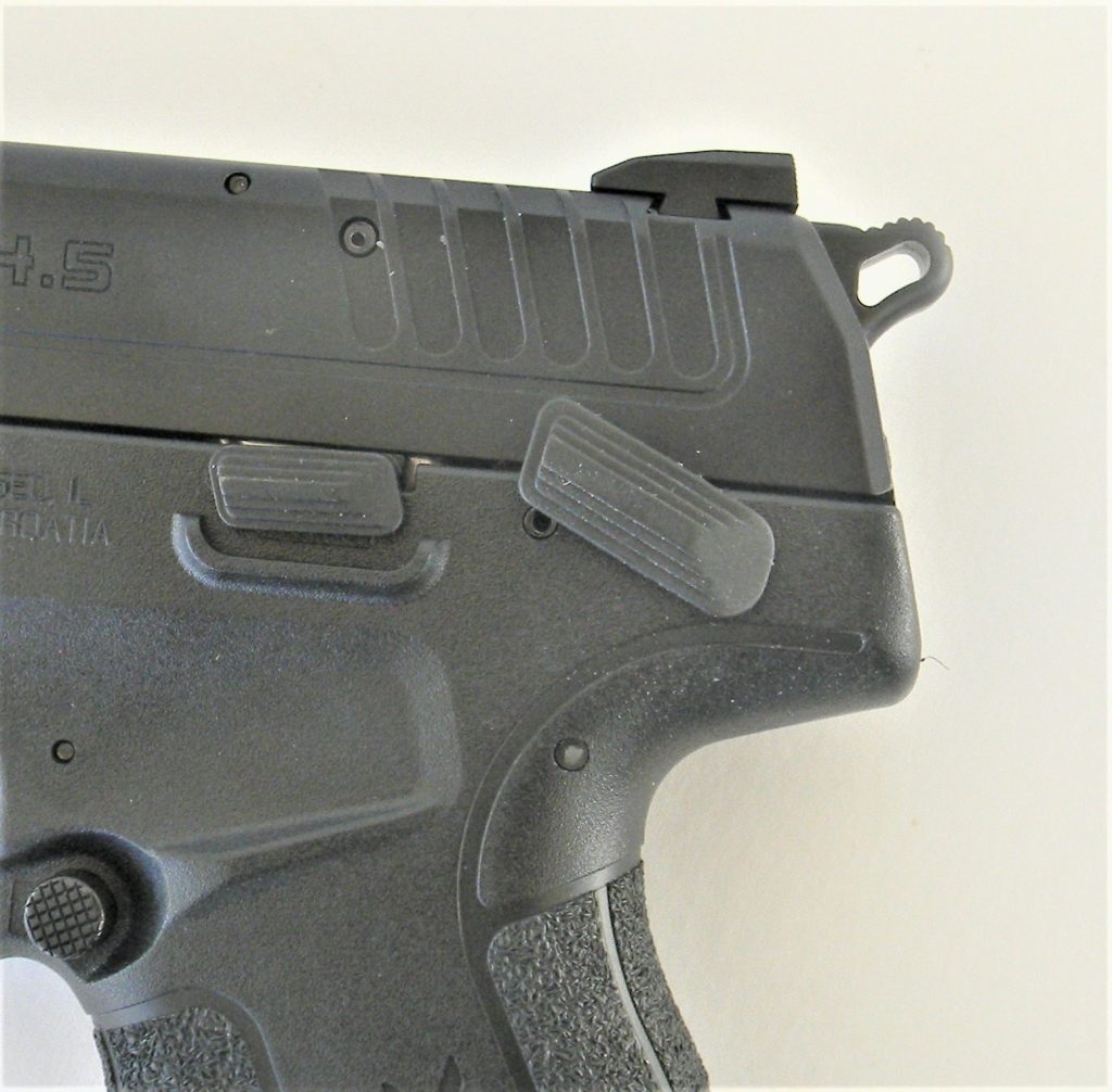 My pistol is the full size version with 4.5 inch barrel. The XDE weighs in at 29 ounces. The magazines hold eight and nine rounds respectively. While this may seem a light load in modern handguns the slim grip makes for great handling and an easy fit for small to average size hands. The finish is dark Melonite a corrosion resistant finish. The grip frame is nicely checkering providing a good balance of abrasion and adhesion. The pistol features a loaded chamber indicator. This is a hammer fired handgun with a polymer frame. The pistol field strips easily in XD fashion using a take down lever. The controls are nicely shaped and placed. Not too large and certainly not too small.