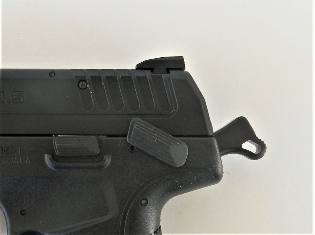 The XDE is actually a selective double action handgun. The first shot is a long pull of the trigger. The trigger both cocks and drop the hammer-there is a transfer bar at work here- and after the first shot is fired the recoiling slide cocks the hammer for subsequent single action shots. However the pistol may be carried hammer to the rear and safety on in 1911/Browning High Power style. This is similar to the CZ 75’s operation in the CZs original form. I think the real advantage of the manual safety is in tactical movement. You may carry the XDE safety on or safety off and hammer down. After the first DA shot if you are moving you don’t wish to decock and run through a DA pull again. Simply place the safety on. If you wish, of course, safety on and hammer back is viable for carry. Hammer down safety on or hammer down and safety off or hammer cocked and safety on are all viable. The hammer may be safely lowered from full cock by pressing the safety downward. There is a decocker function in the safety’s operation.