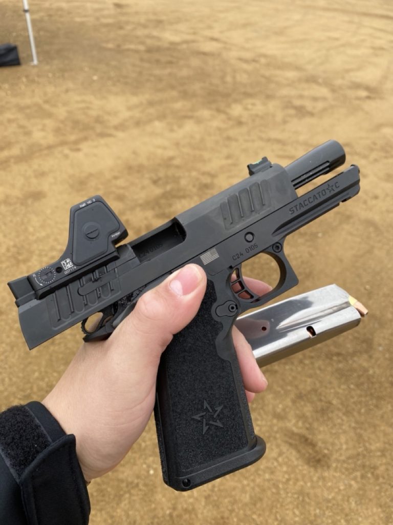 The Staccato C takes after its smaller sized sibling the Staccato CS. The Staccato C has a four inch barrel and uses a slightly larger magazine that holds 18 rounds of 9mm. Furthermore, it’s grip is more in line with other contemporary pistol designs as opposed to the 9mm/38 Super sized 2011 wider grip modules. Shooting the 125-grain Staccato Match ammo through this gun felt very pleasant and I wound’t mind getting my hands on one for a more thorough review.
