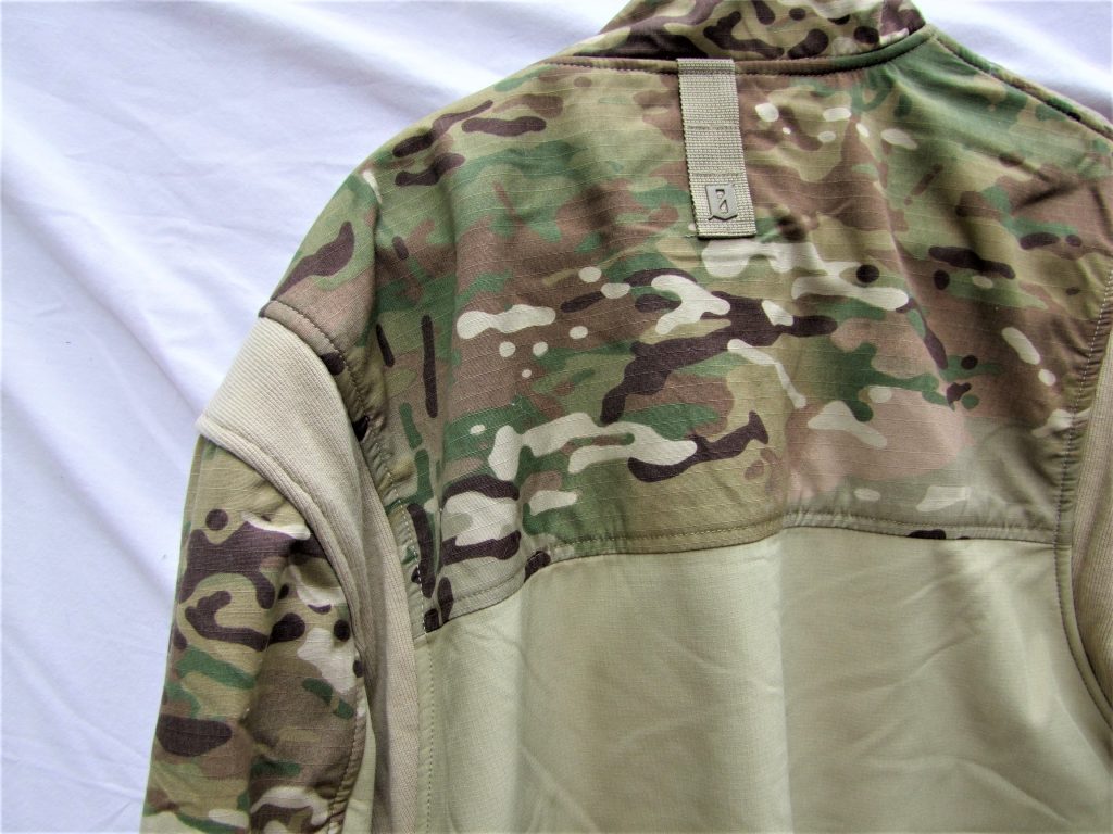 You can see the stretch fabric at the shoulder and the routing loops under the collar for commo cables.