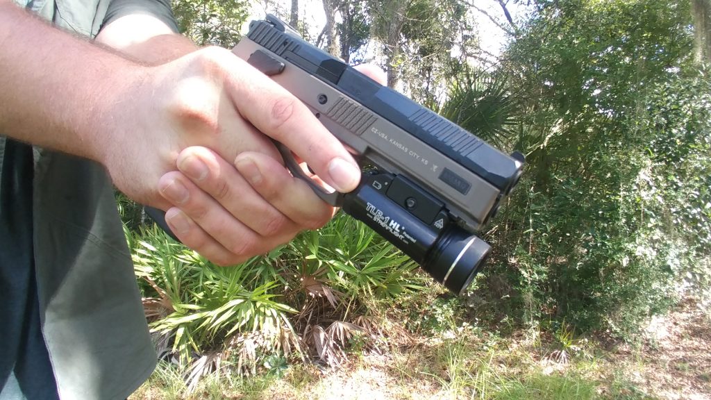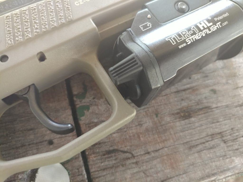 This handgun weapon light mounts to nearly any handgun and Streamlight includes a small set of adapters to fit a variety of different rail systems. The Streamlight TLR-1 is a full-sized light, so it works best on full sized guns. As you can see it’s found its way onto my CZ P09, where it stays for home defense duty.