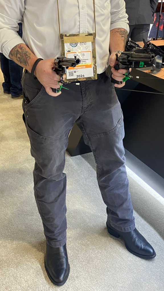 The Taurus 605 shares the same compact frame size with the Taurus 856/905/327 etc, but with the distinction of being chambered for the .357 Magnum cartridge. Unlike the standard 6-shot 856, all 605 revolvers have a 5-shot capacity that leaves extra material in between the charge holes in order to account for the more powerful magnum cartridge. For 2024, Taurus is now “promoting” this small framed .357 workhorse into their Executive Grade product line along with the 856 (2022) and the Judge (2023). Executive Grade guns are factory tuned, a distinct steel Satin finish and a different set of walnut stocks that set them apart from the standard catalog items. The new Taurus 605 Executive Grade revolver also comes with a very tastefully done brass front sight and a deeper than standard rear topstrap notch. I dry-fired one at the Taurus booth this morning and the sight picture and double action trigger pull are great.