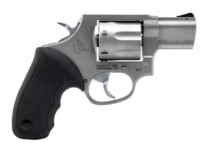 The Taurus 817 features stainless steel construction and comes with a discrete matte finish. I remember the days when Taurus stainless revolvers all had high polish finishes. I was never a fan, so it’s nice to see the low-profile, practical finish on the 817 and other recent releases. The 817 uses a compact grip frame and is fitted with a rubber grip interchangeable with the Judge/Tracker series revolvers.