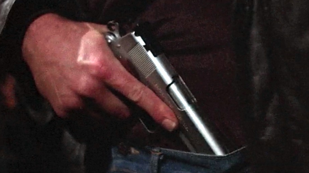 Colt Combat Commander, carried in Frank’s waistband. Ideal placement (preferably with a holster)