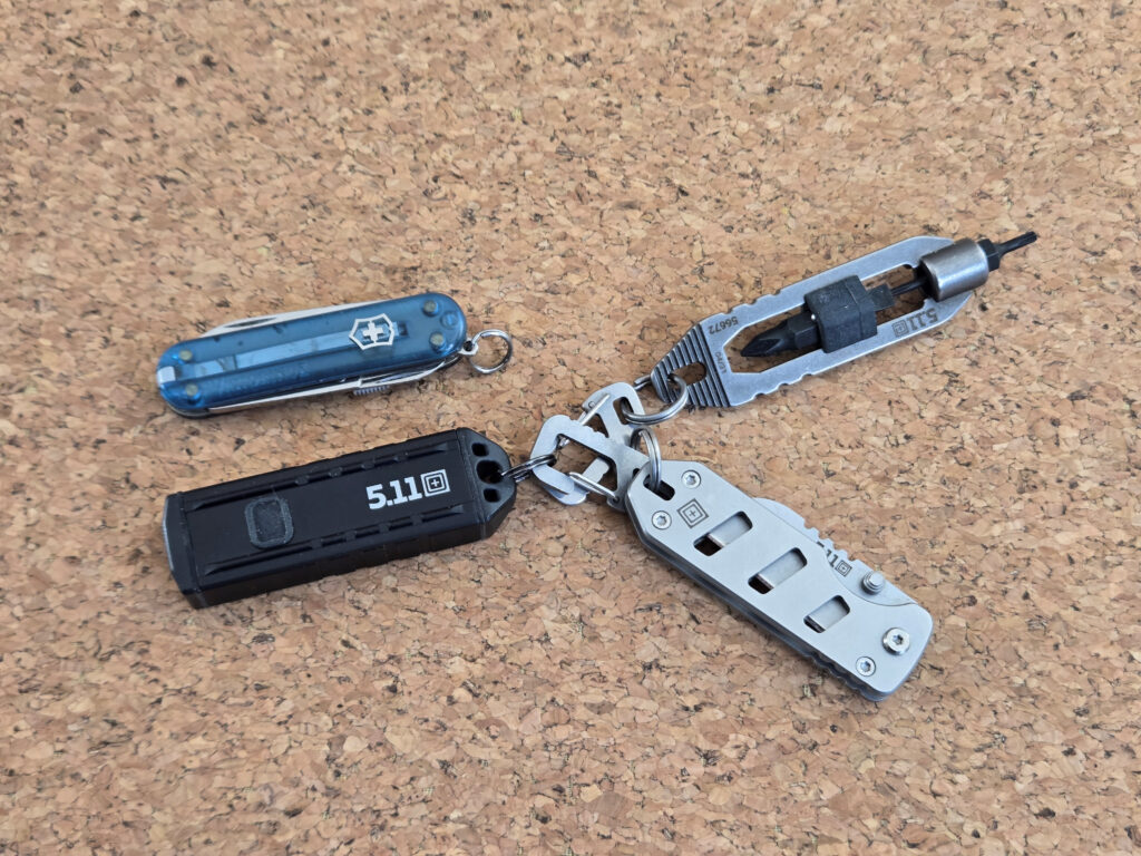 There’s a low-battery indicator on the side body switch of the little Deploy light. When it does indicate that you need a recharge, that’s done with a common USB-C cable. The K-USB comes with a split ring for attaching to your keychain or even a zipper pull. It’s a handy size that works well with other small tools. I paired it up with either Victorinox Classic or the 5.11 Base 1SF knife and EDT Hex tool.