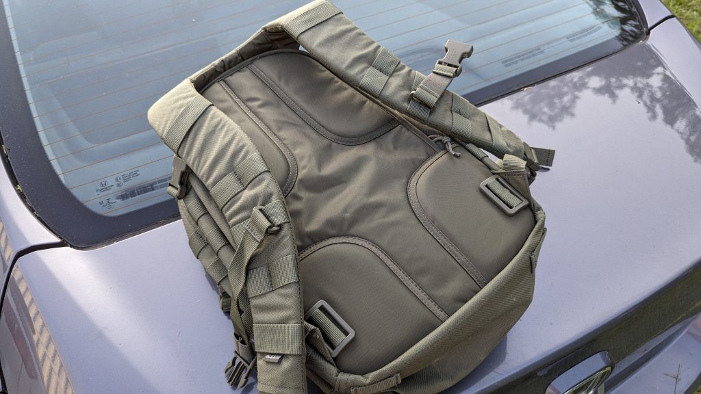 It makes toting my goodies to and from comfy, and if I’m stuck in a hurry-up-and-wait situation, I don’t mind wearing the pack. The orientation of the pads even allows for airflow to keep things cool.
