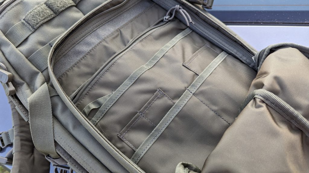 On the outside, we have our fair share of MOLLE for attaching whatever extras you may need. A lot of people point to MOLLE as some kind of giveaway to tactically and treat it like open carry. It might not be discrete, but hell, even my son’s backpack from Wal-Mart has MOLLE on it these days. I don’t think it’s as big a tell anymore.