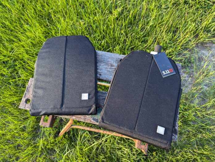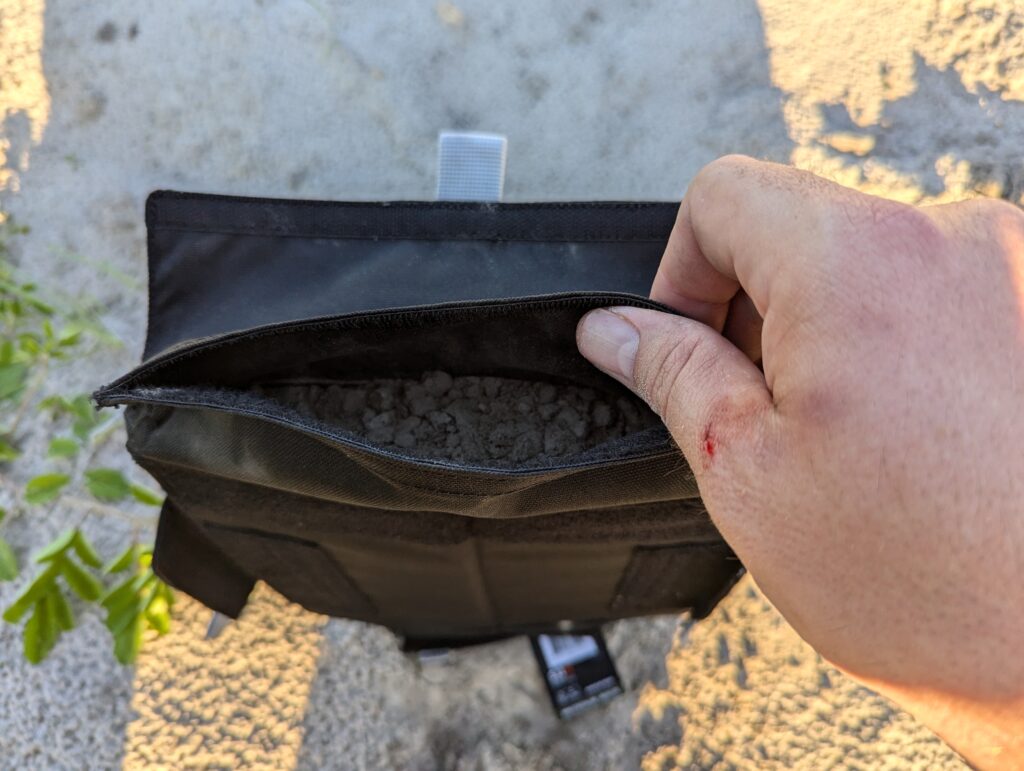 The TacTec plates come as a set. They are made from 600D polyester and feature an internal PE board for rigidity. The bottoms of the TacTec plates open and allow you to easily fill them with dirt, shot, pebbles, rocks, or whatever. I went with simple dried sand. The bottom opens, and hook-and-loop flap closures keep the dirt where it needs to be. When filled with sand, they weigh about five pounds each.