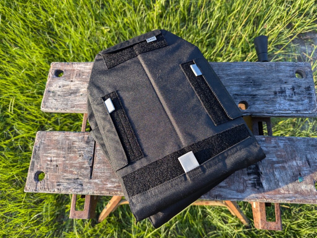 Everything about the plates is designed to provide a balanced load. The internal PE board keeps the plates from bulging and sand from gathering. An internal divider does the same and helps with balance. On the back side, we have hook-and-loop tabs to tighten the plates down and ensure they fit in your average carrier. The boards and divider provide durability and rigidity, so they replicate ballistic plates.
