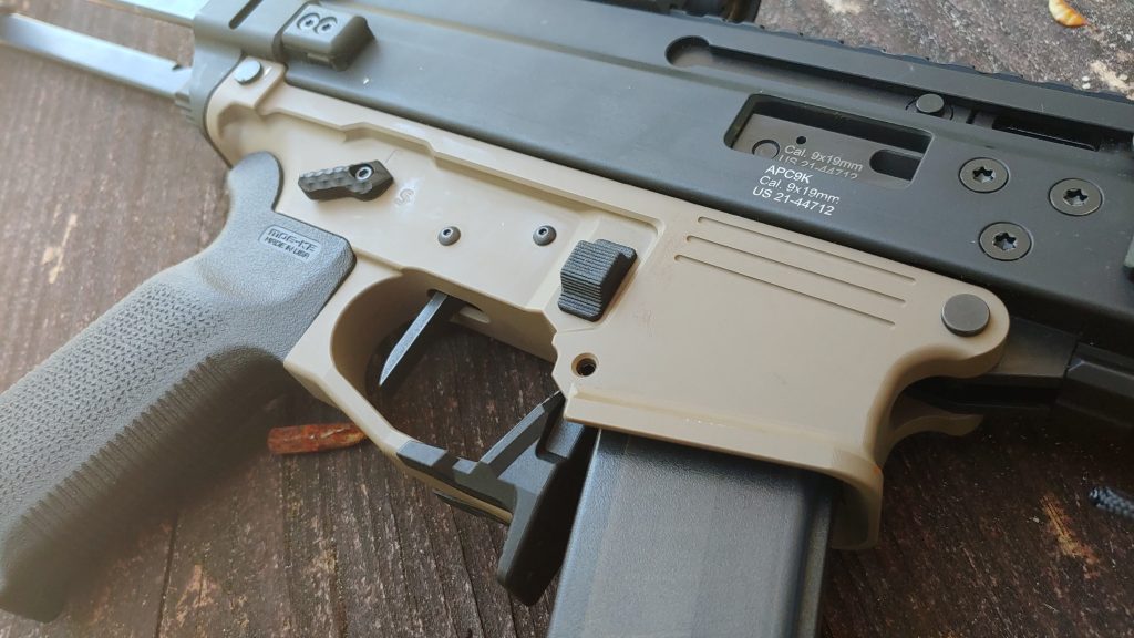 Lingle produces a number of interesting lower options for a variety of guns. They make lowers for the APC9, as well as the Stribog, SCAR 16, SCAR 17, and BREN 2. With the APC9K, their lowers allow you to be more selective of your magazine choice, and Lingle makes a lower I couldn’t help but love. Their Scorpion lower for the APC9K allows me to use Scorpion mags.