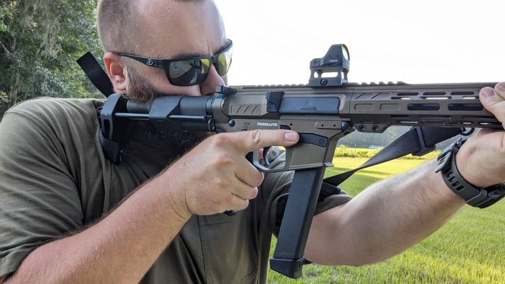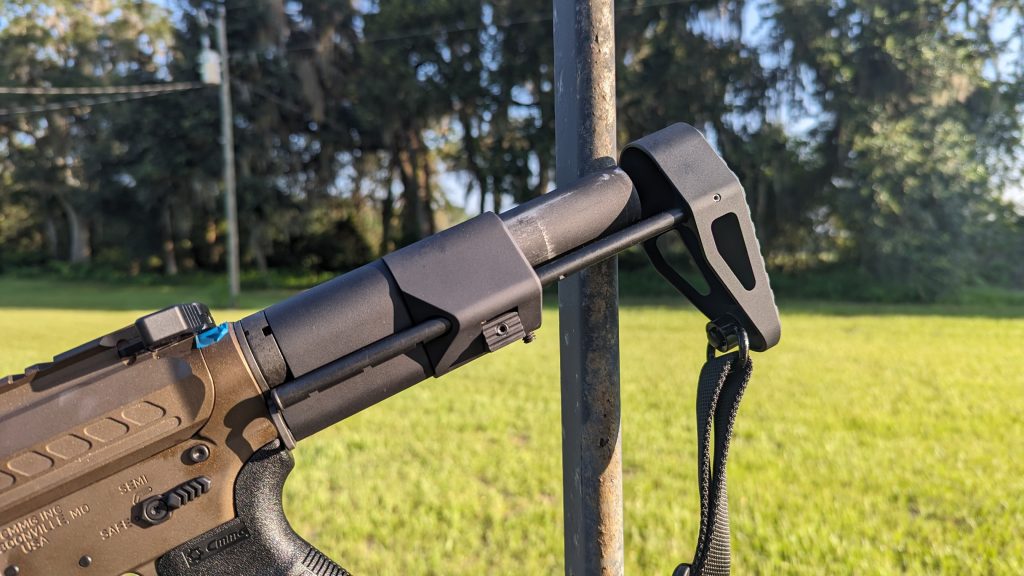 PDW stocks typically have a few flaws. They tend to be somewhat uncomfy, and they also tend to wobble and wiggle. That’s not the case here. The stock lockup is quite tight, and there is no wiggle or wobble. Additionally, the stock isn’t uncomfortable, and it provides an excellent amount of support and a great cheek weld. While the stock is all metal with no give, it doesn’t hurt or punch with recoil.