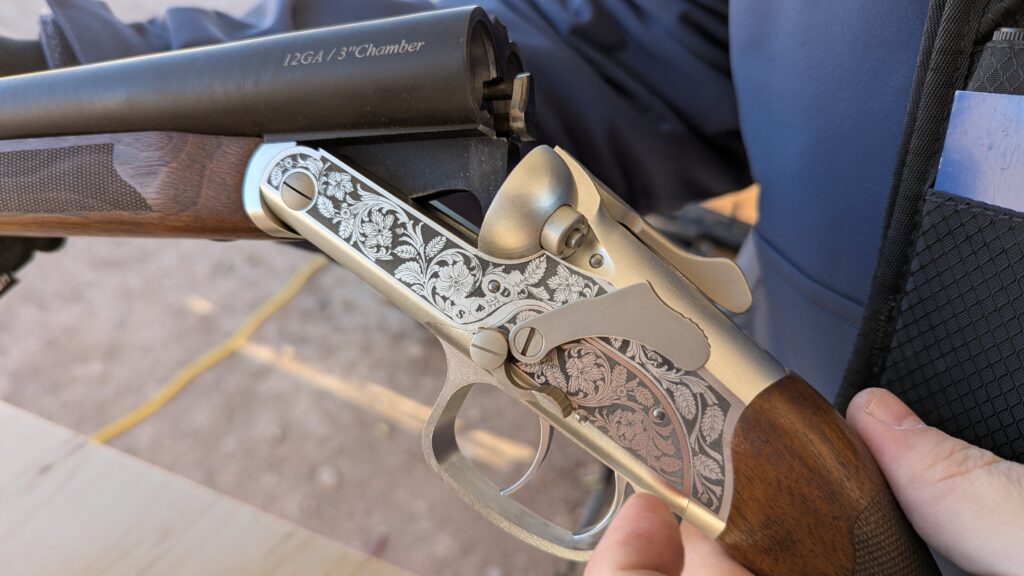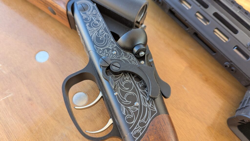 These hammer-fired double-barrel shotguns have bead sights and, typically, I’d say not much else. The Road Agent has a very interesting hammer setup.