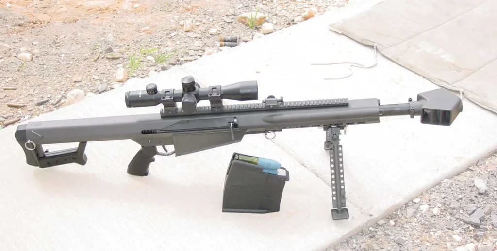 The XM109 series came with a bipod, carry handle, Picatinny rail, and similar standard Barrett goodies. It also had a massive muzzle brake with hopes of reducing recoil.
