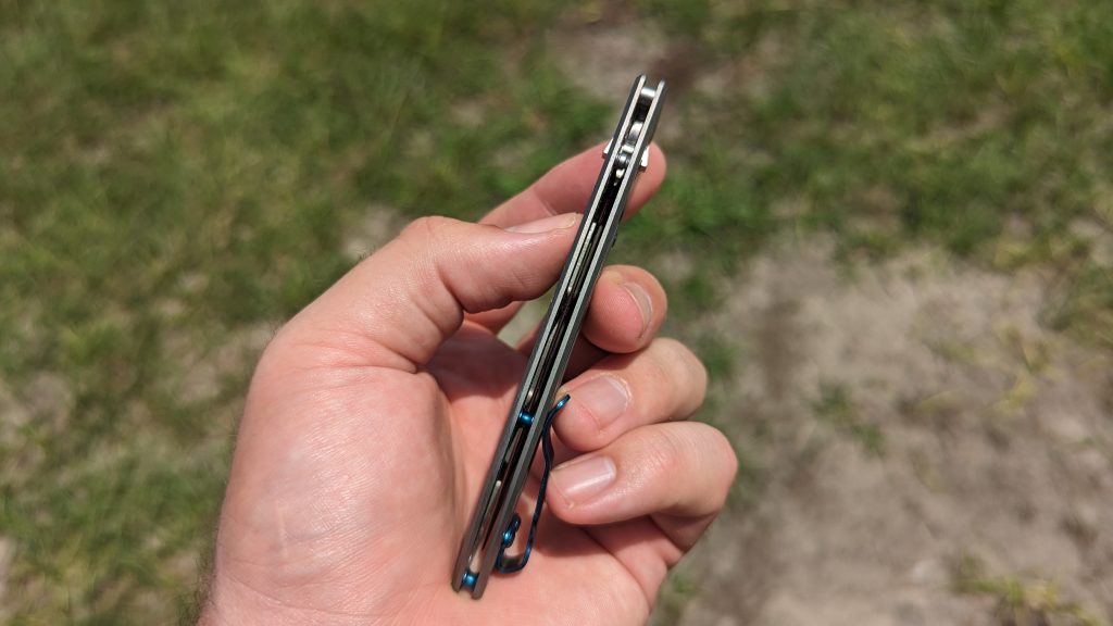 How narrow? It’s just a hair over a ¼ inch at 9/32 inches thick. That’s crazy thin for a full-sized pocket knife. Titanium is also lightweight, and the knife weighs a mere 2.4 ounces. The blade is 3.44 inches long, and the closed length is 4.6 inches. This takes lightweight EDC to a new level.