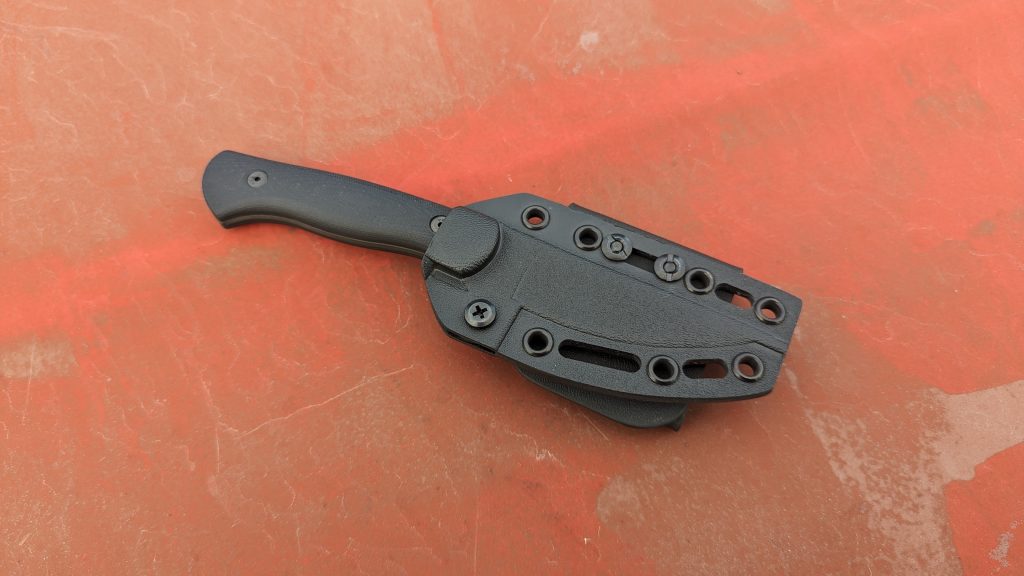 The Blackfoot comes with an awesome kydex sheath. It’s lightweight and well-made. The sheath comes with a belt mount, and the belt mount can be manipulated to mount the knife at nearly any angle. It’s made in America, too, which is a nice touch from another made-in-America company.