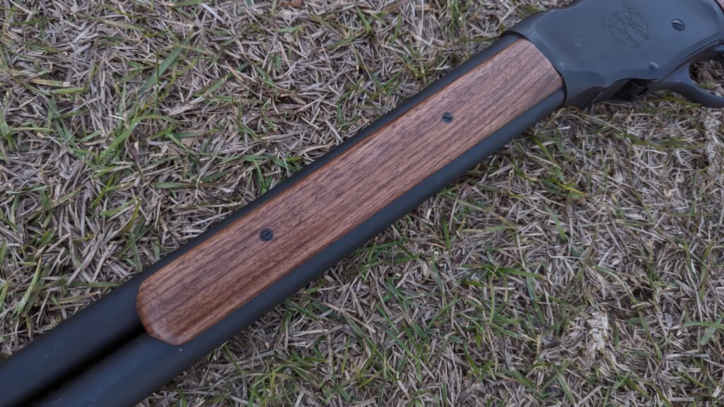 The Terminator 1887 is a Chinese-made shotgun that’s surprisingly well-made. It looks drastically better than the previous Chinese variants imported by Century Arms. The wood looks fantastic and feels solid. It’s smooth as a baby’s butt, so don’t expect any texturing to grip back. The finish is a matte black that I wouldn’t call a rich blue, but it looks great.